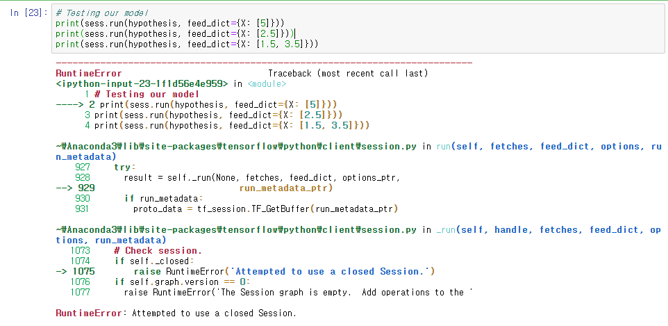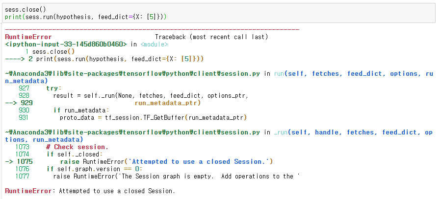 그래서 RuntimeError: Attempted to use a closed Session. 오류가 발생하게 되는 것이지요.