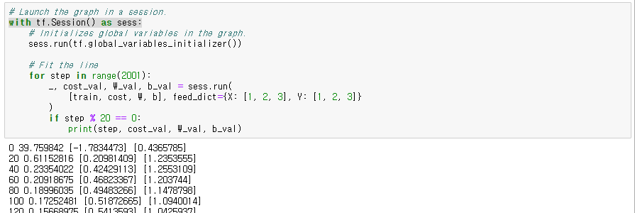 with tf.Session() as sess: 를 쓰는 경우 해당 with블럭이 끝나면 Session()이 종료됩니다.