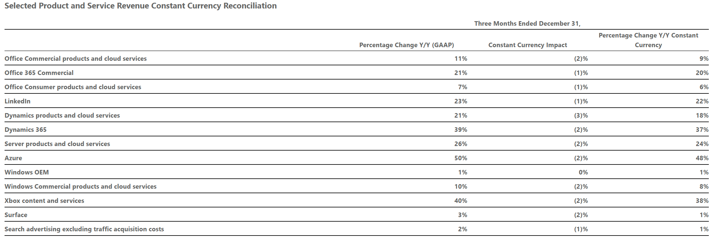 전 사업부분 성장 달성!! 아무리 큰 기업이라도 잘 나가는 부서가 있으면 약간은 손해를 감수하고 있는 부서도 있는 법인데, 이는 마이크로소프트에는 통용되지 않는 지식이다. 링크드인(Linkedin), 다이나믹 365(Dynamics 365)도 20% 이상의 성장률을 보였다.