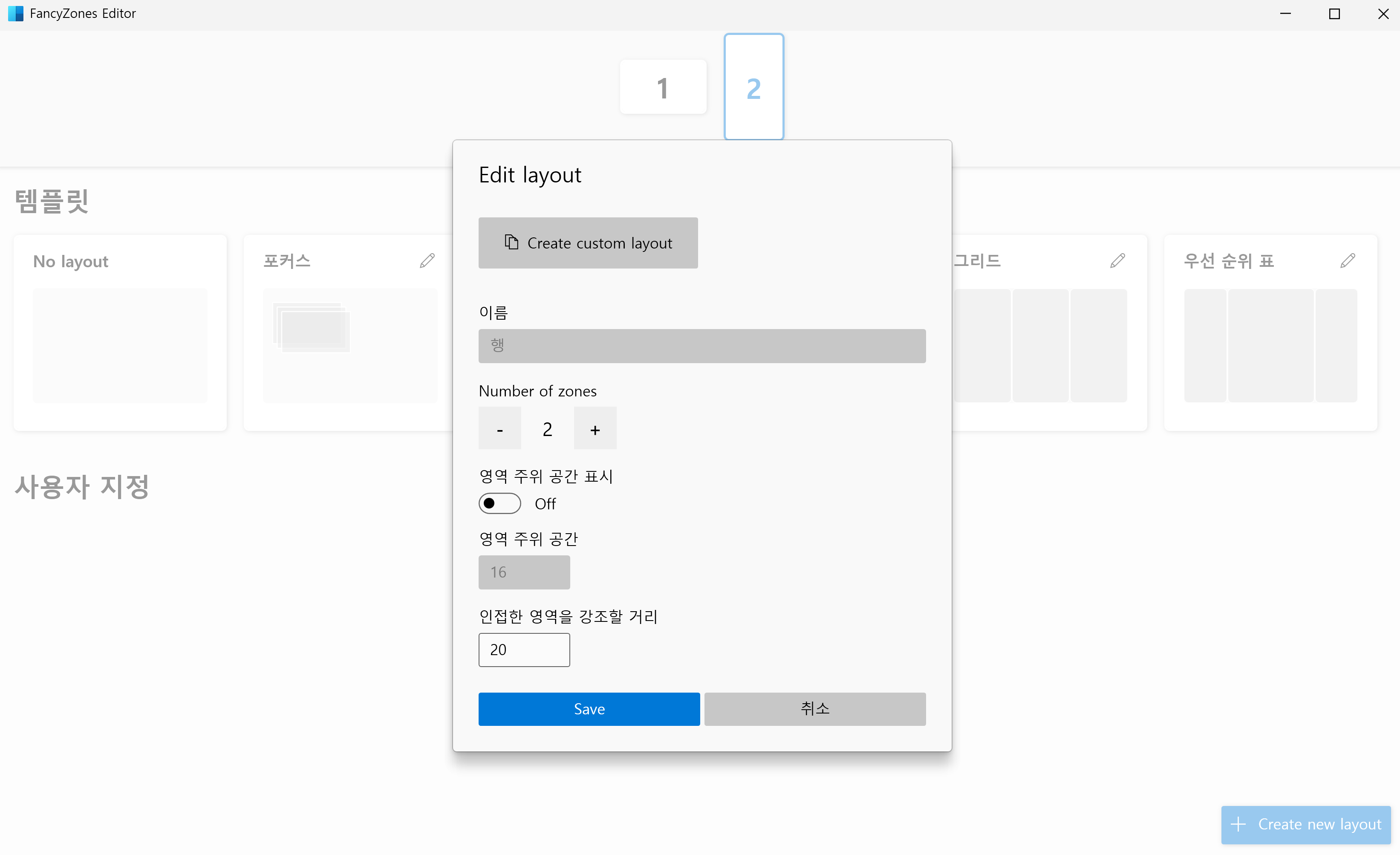레이아웃 편집기 열기는 Win + ` 단축키로,