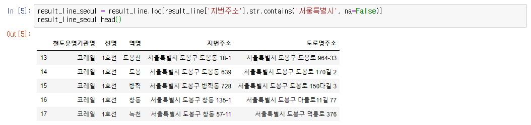 위 데이터프레임에서 지번주소는 모두 "서울특별시 ㅇㅇ구 ㅇㅇ동 ~~~" 형태의 문장 구조를 가지고 있습니다.