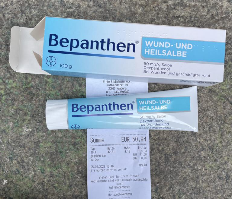 독일 출장일이 있어 아기 습진 관리에도 쓰고, 나도 많이 쓰는 비판텐 연고를 구입해왔다.