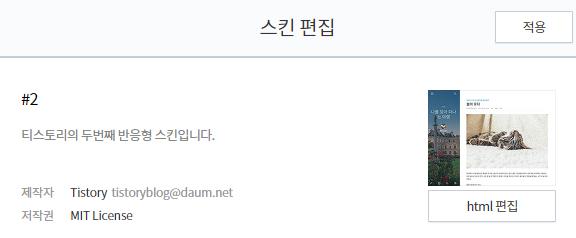 2) 스킨편집 - html 편집 선택