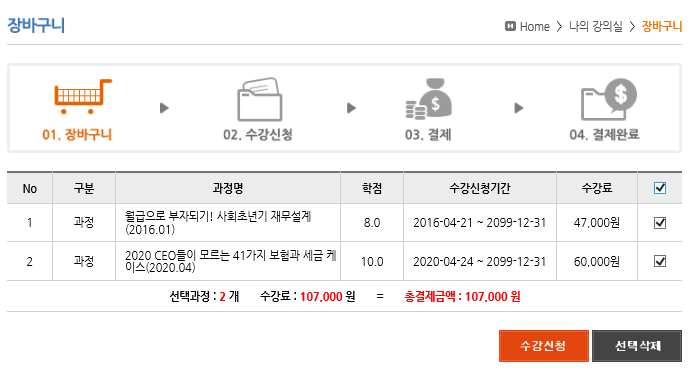 윤리 과정은 1학점당 1만원이니, 2학점짜리 한번에 끝내시면 됩니다.