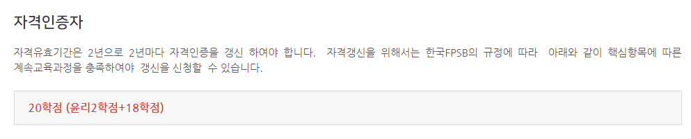 지금까지 AFPK 자격연장을 위해 효율적으로 계속교육학점 20학점(윤리 2학점 포함)을 이수하는 방법을 알아봤습니다.