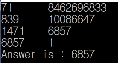 3. 마지막으로 나누었을 때 1이 되도록 하는 값이 우리가 구하고자 하는 값이다.