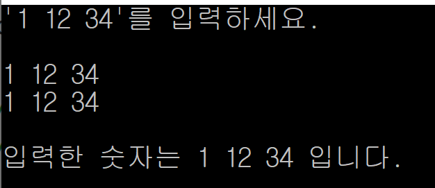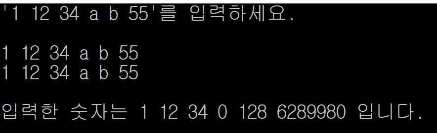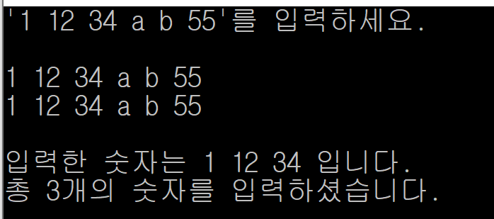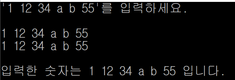 cout << "'1 12 34 a b 55'를 입력하세요." << endl;